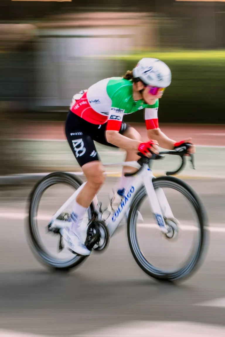 Fotografare il ciclismo su strada significa scegliere una posizione e aspettare. Gli atleti passano una volta, spesso in pochi secondi. Andrea ha seguito entrambe le gare da bordo strada.
