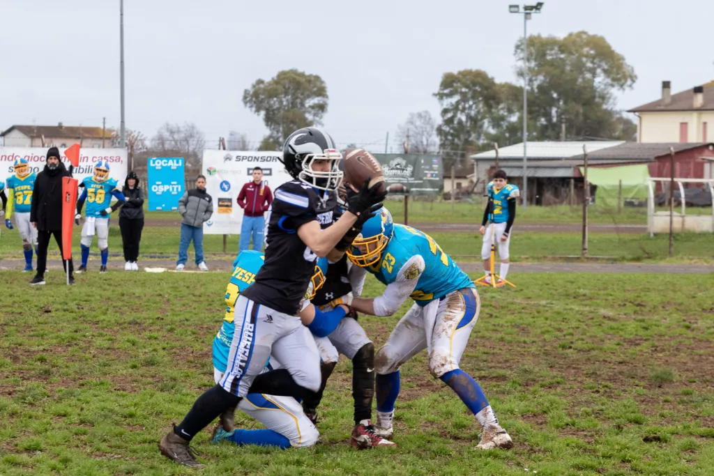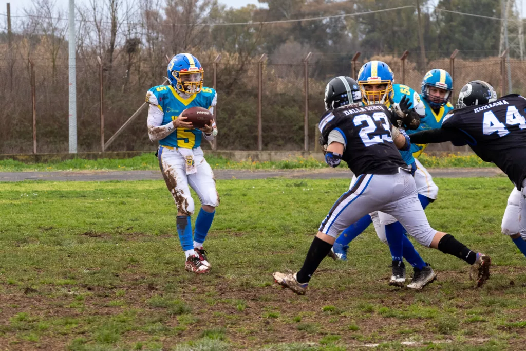 L’8 febbraio, al 22 Field di Cisterna di Latina, i Bufali Latina hanno ospitato le Vespe San Giorgio Jonico per il secondo match del Campionato 7 Man CSI Tackle.