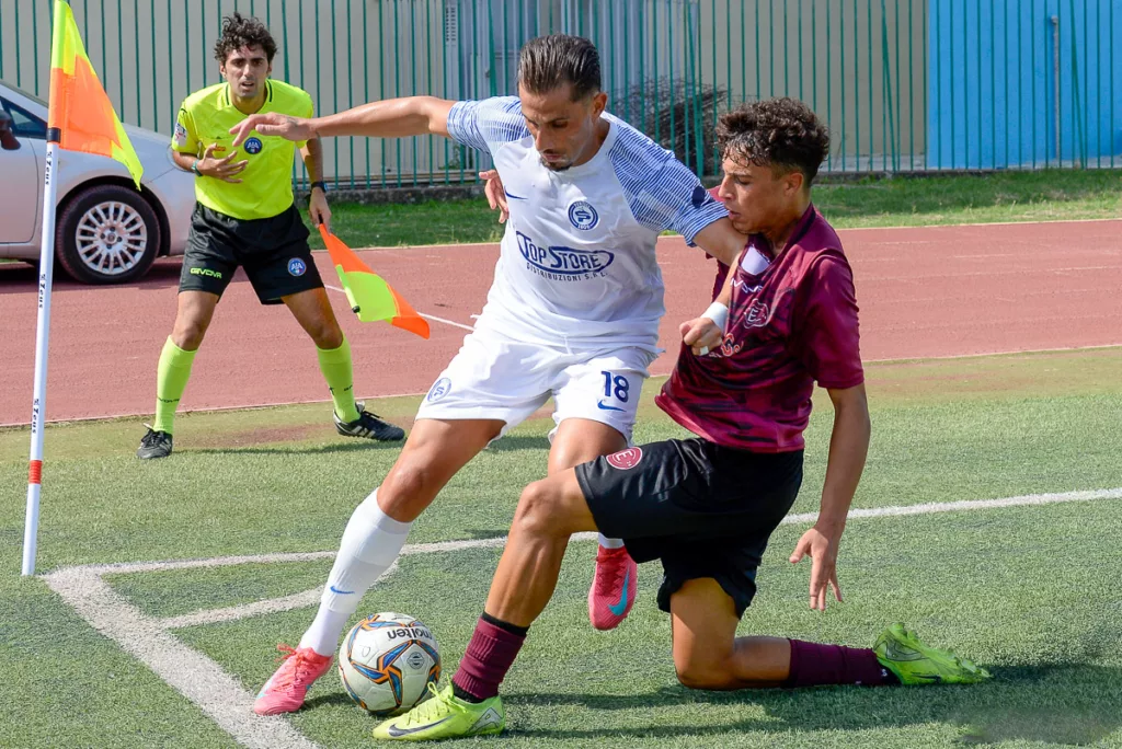 Dal terreno di gioco agli spalti, la partita diventa racconto visivo. Le fotografie restituiscono l’energia di chi scende in campo con il cuore e la determinazione tipici del calcio dilettantistico, ma anche la tensione che si respira in una sfida così sentita.