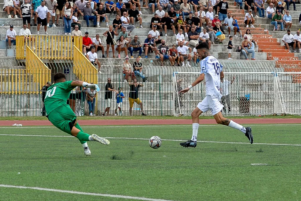 Con la sua esperienza maturata seguendo il calcio professionistico e giovanile, De Rosa riesce a trasmettere l’intensità del gioco: contrasti duri, esultanze liberatorie e sguardi concentrati dei protagonisti. Ogni scatto racconta non solo l’azione, ma anche l’atmosfera di un derby che, a livello locale, significa appartenenza e identità.